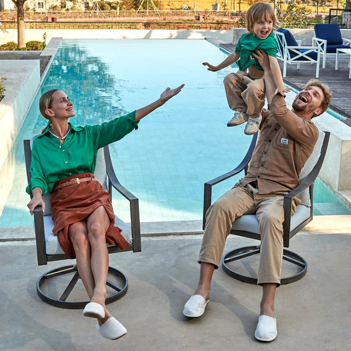 Anorah Powder Coated Steel Outdoor Dining Swivel Armchair with Cushions- set of 2